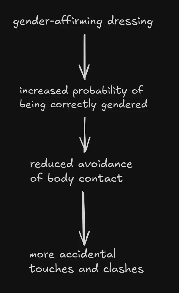 It was a huge success that LLMs stopped misgendering me in my photos with such a proof of social identity. It fit me so well that it even intensified my intent to eradicate the stick-shaped tumor sticking out of my crotch and accompanied by two evil balls that constantly secreted testosterone that ruined my voice, build and skeleton irreversibly. As Wanting put it, it was unpleasant but unavoidable.